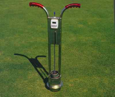Now, for the first time, a field instrument to measure the rate of water infiltration on all areas. This instrument determines the downward flow of water through the turf and soil.
